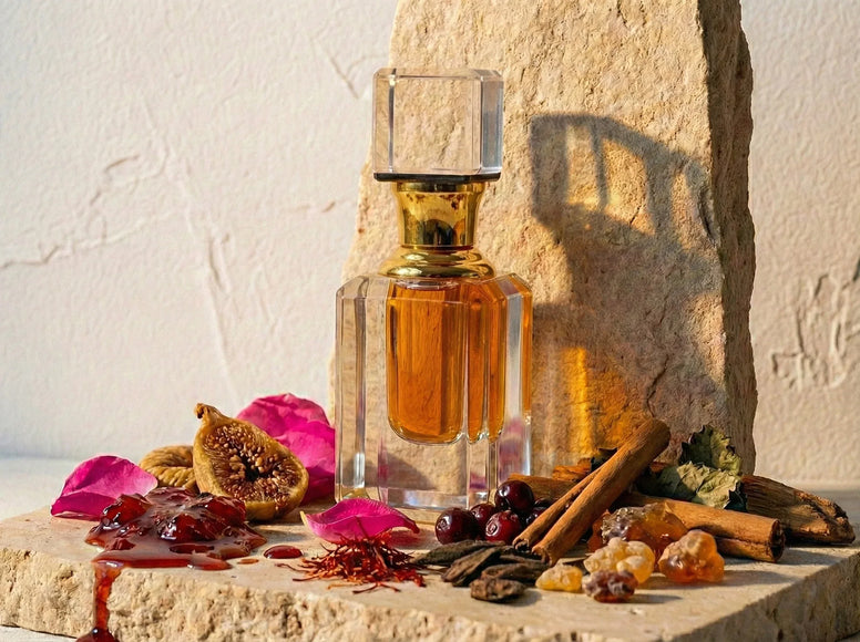 - المكونات الرئيسية: وردة دمشق العميقة، تين مجفف، رمان، زعفران، قرفة، عود مخملي، راتنجات عنبرية، باتشولي.