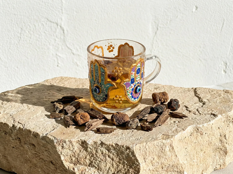 - Håndmalet Talisman: Hvert glas er dekoreret i hånden med symbolet Håndens Fatima for øget åndelig beskyttelse.