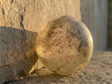 Det er den ideelle beholder til magiske drikke, månevand eller blot som symbol på livmoderen, frugtbarhed og moderlig beskyttelse. På et alter bringer denne antikglas-reproduktion en energi af blidhed, rundhed og fuldkommenhed. Den har hverken begyndelse eller ende; den er den evige cyklus, materialiseret i glas.