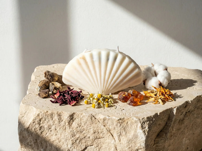 Doch das wahre Geheimnis dieser Schöpfung liegt in der gezielten Zugabe von natürlichem Mondsteinpulver, einem seltenen esoterischen Bestandteil, der die Substanz verdichtet und die Energien beim Abbrennen stabilisiert. Jede Muschel wird Blüte für Blüte gemeißelt und birgt in ihrem Zentrum einen natürlichen Mineralstein als Überraschung, ein wahres Geschenk der Erde, das darauf wartet, sich beim heiligen Schmelzvorgang zu offenbaren.