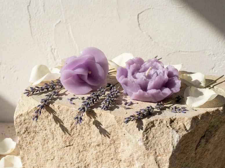 The making process respects the laws of long time: genuine organic lavender flowers are steeped for two whole weeks in a precious floral oil before being macerated in warm wax at a controlled temperature. The addition of a veil of natural moonstone powder gives this piece a relaxing character and an exceptional vibrational density. Each flowered tower is hand-carved by the craftsman, trapping at its heart a natural stone that will reveal itself as the candle burns down.