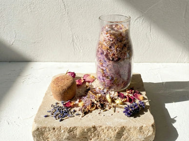 This small jar is a secret garden. It brings together the floral trinity par excellence: the Rose for love, the Lavender for peace, and the Jasmine for magic. Creating harmony between these three queens requires precise skill. That is why we use sand maturation for this Spiritual Bath Salt with Essential Oil.