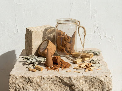 Pero no nos detenemos ahí. Para crear una sinergia completa y poderosa incorporamos a esta pasta Salvia Blanca purificadora y Palo Santo sagrado en polvo. Es un trío formidable que cubre todo el espectro vibratorio. El moldeado de los conos se hace a mano, presionando en pequeños moldes de latón o modelando con los dedos según la inspiración del artesano. Una vez desmoldados, estos pequeños montículos de pasta aromática se colocan en frascos de vidrio y luego se almacenan en tinajas antiguas para una maduración de 1 a 2 meses.