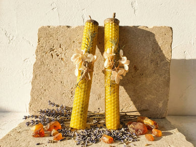 - 순수 밀랍: 공기를 이온화하고 높은 진동수를 집에 불어넣는 고귀한 자연 자원입니다.