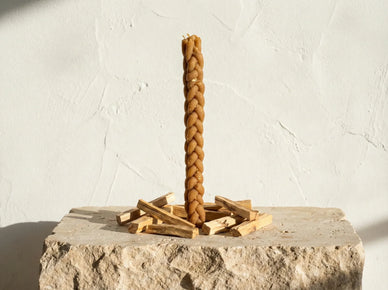 Le Palo Santo, ou bois sacré, est le gardien de cette bougie tressée 5 mèches d'exception. Chez Essences Agape, nous honorons cette essence millénaire en la mariant à la profondeur de la cire d'abeille bio riche.