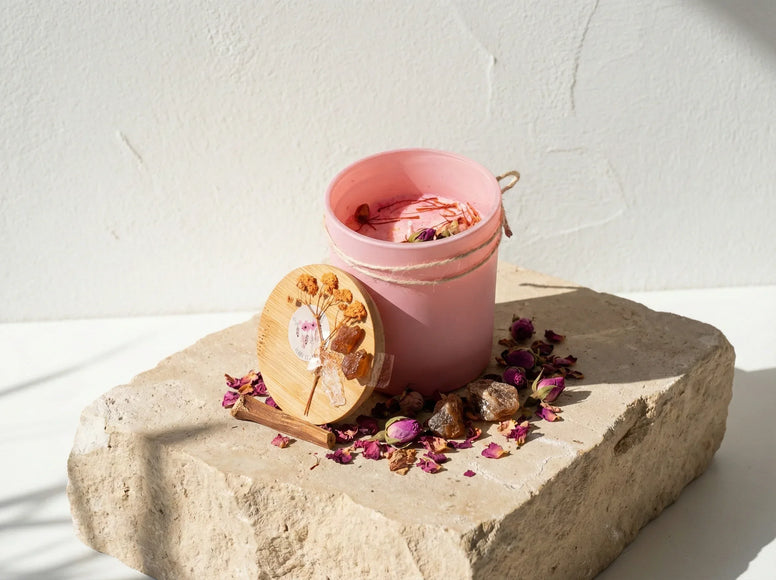 Pour un chakra nettoyage du sacré et du cœur, allumez cette bougie lors d'un moment d'introspection ou de yoga doux. La vibration du musc aide à l'ancrage sensoriel tandis que la rose élève vos pensées. La roche de lune contenue dans la cire stabilisera votre champ énergétique pour une confiance en soi durable.