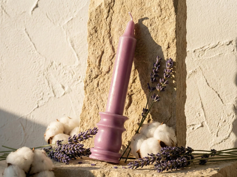 - Ingrédients clés : Lavande fine bio, Coton naturel, Roche de lune, Cire d'abeille.