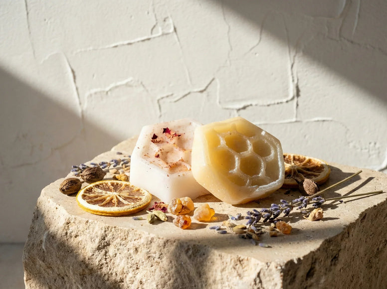 Chaque pièce témoigne de notre exigence de produit haut de gamme artisanal. Citrons bio, ambre véritable, cire d'abeille pure. Nous refusons les parfums synthétiques qui imitent le citron avec une odeur de détergent. Ici, c'est le fruit véritable qui s'exprime. Sans sucre, sans additif, ce fondant est une gourmandise olfactive saine, respectueuse de votre souffle et de vos pratiques ésotériques.