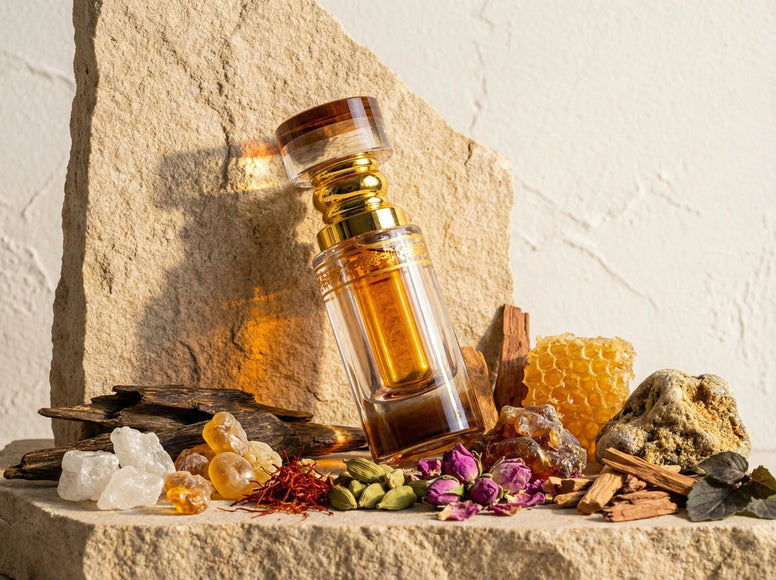- Ingrédients Maîtres : Oud majestueux, muscs blancs, muscs ambrés, safran, cardamome, rose de Taïf, bois précieux, miel discret, santal, patchouli.