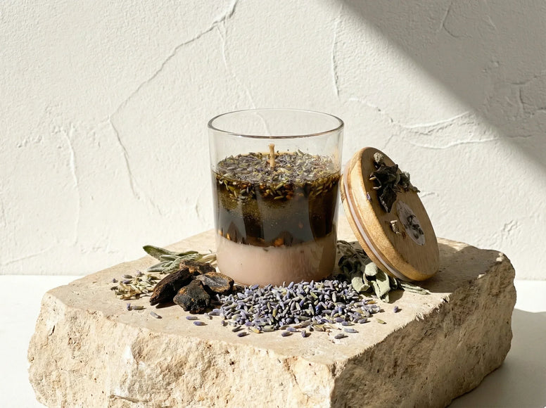 С момента зажигания вас охватывает плотная и мистическая бархатистость аромата. Вид фрагментов шалфея и щепок уда, парящих в геле на поверхности, создаёт эстетику алхимической лаборатории, приглашающую к сосредоточению.