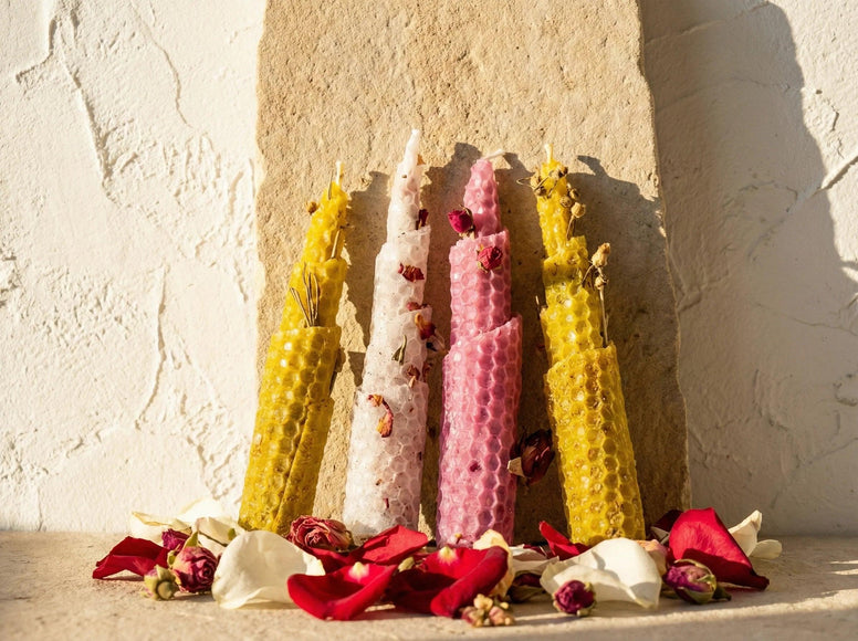 Эта свеча защиты в форме двойной спирали — ода царственной красоте и безусловной любви. В нашей мастерской мы соединяем благородство золотого пчелиного воска с нежностью органических роз.