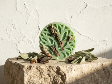При горении дым лёгкий и свежий, идеально подходит для гармонизации пространства и эффективного очищения чакр. Фрагменты шалфея, видимые сквозь воск, создают органичный и духовный образ, напоминая, что каждый ингредиент происходит из священной земли. Это чувственное погружение способствует внутренней гармонии и рассеивает застойные энергии.
