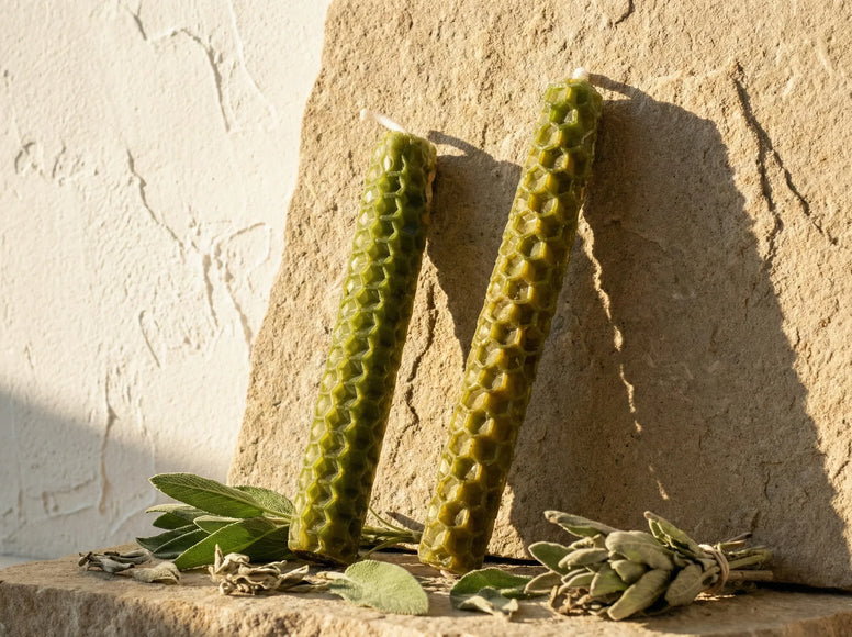 Bu eser, mekân koruması ve arınmaya adanmış koleksiyonumuzun temel taşlarından biridir. Binlerce yıldır kullanılan bilgi otu olan organik adaçayı, burada saf ve altın renginde bir organik balmumu ile yüceltilmiştir.